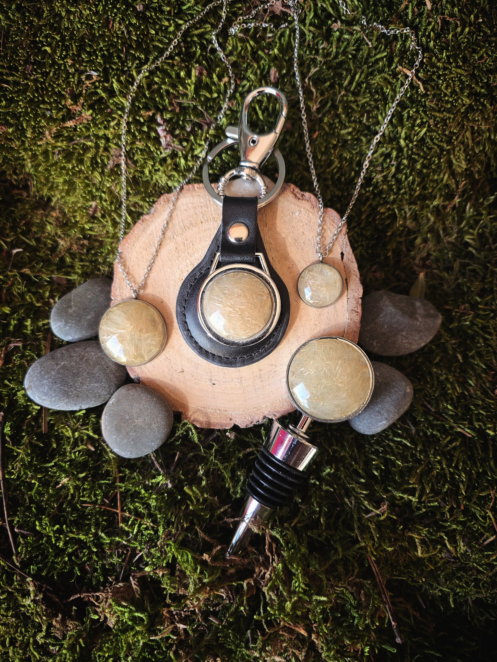 Cabochon 30mm réamisé à la main avec de véritable plumeau pampas