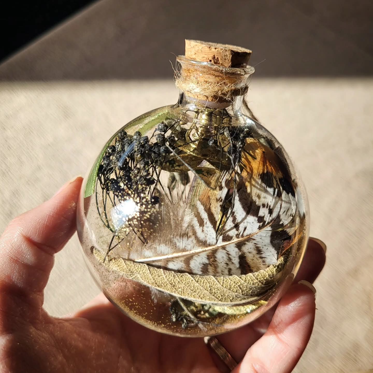 🔸️d'une boule en verre remplie délicatement et scellée à la main.