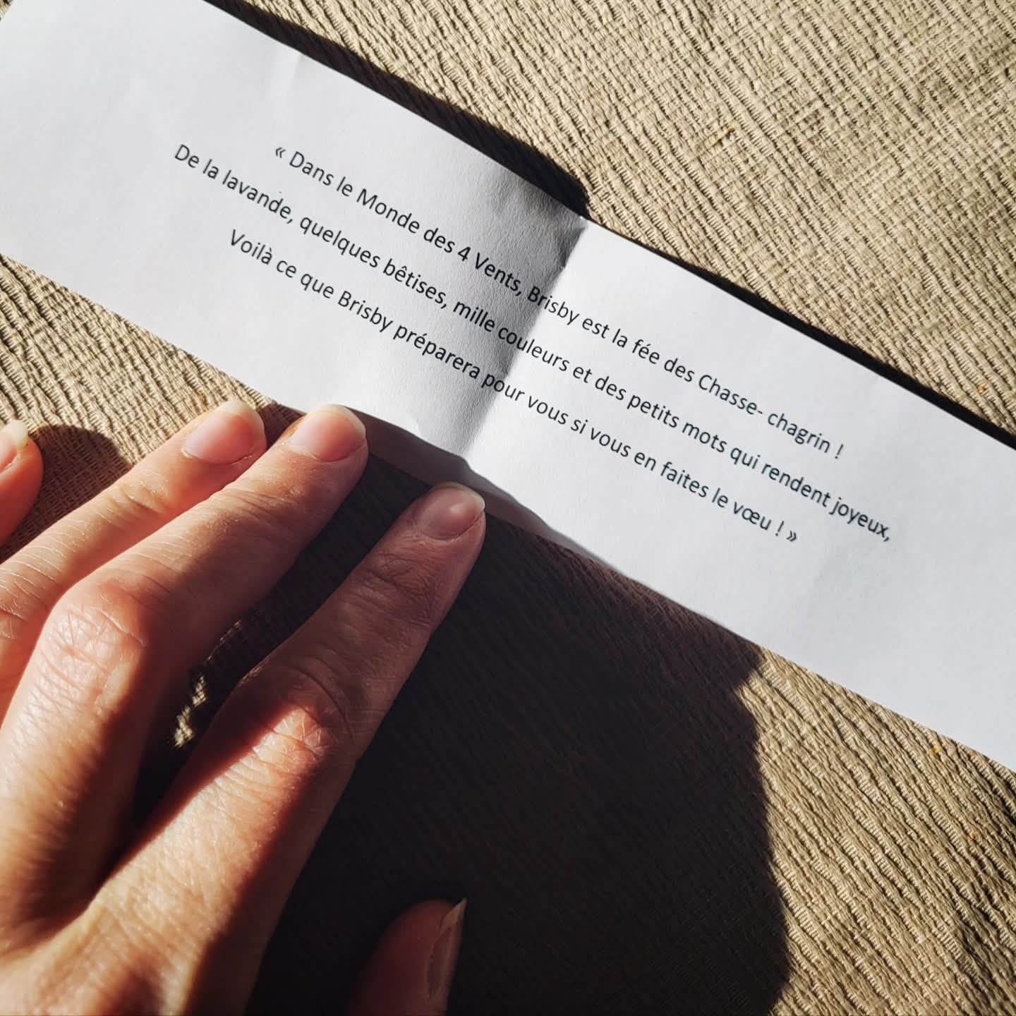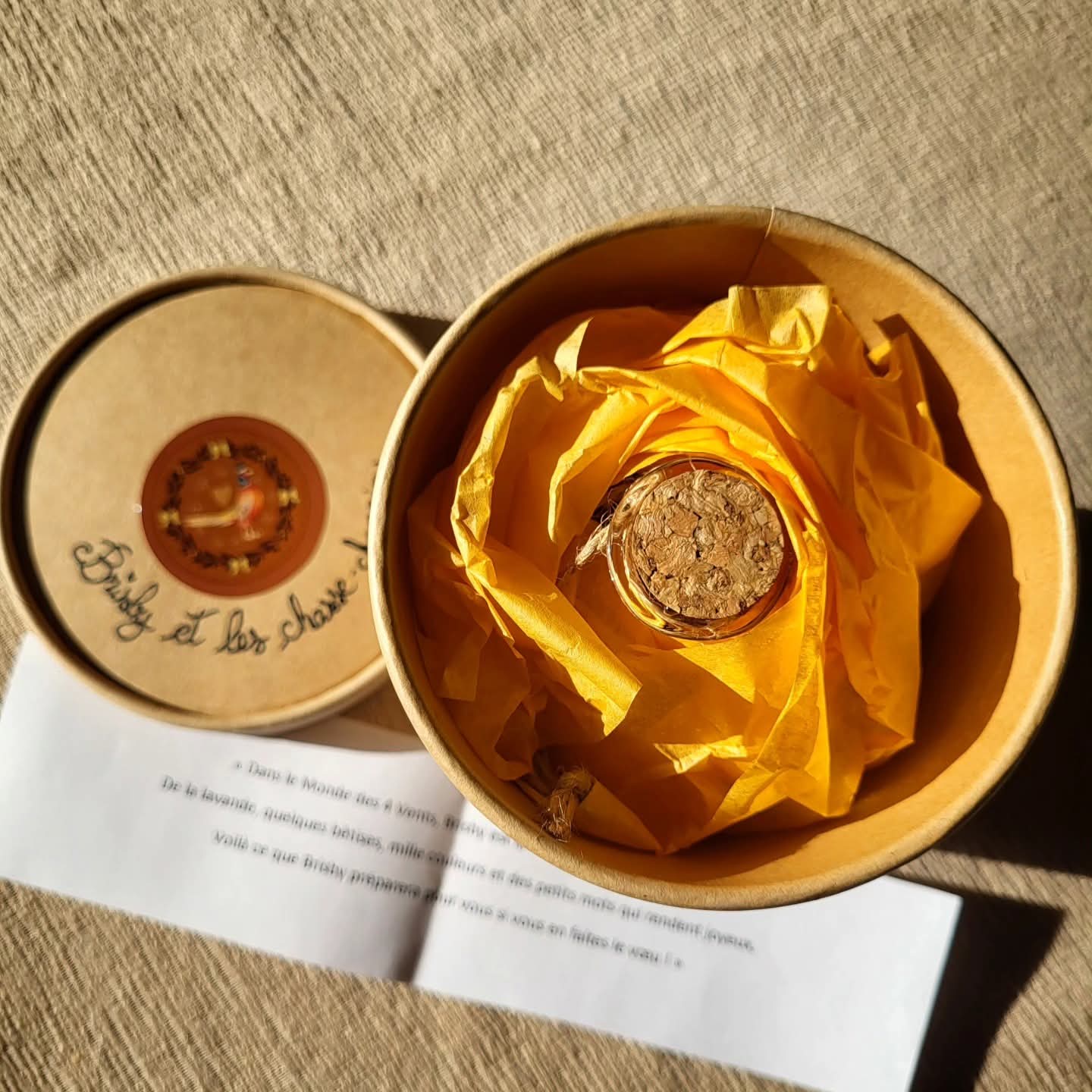 À l'intérieur vous y retrouverez la magie des 4 Vents, des plumes multicolore, de la lavande enchantée de la célèbre Dame aux Histoires, une formule magique écrite à la main, et bien évidemment les courriers que Brisby distribue aux détour de sa route 😊