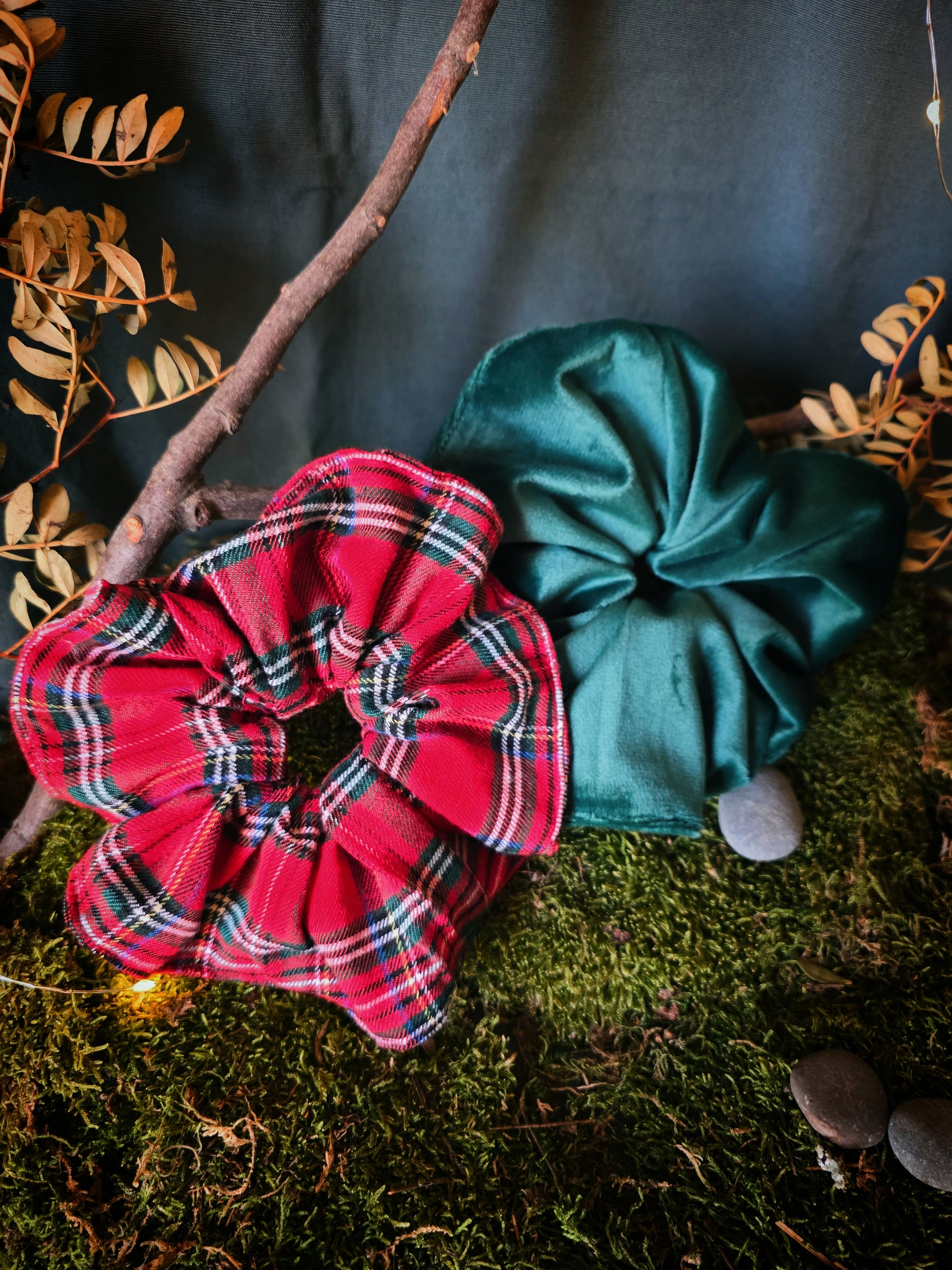 🔸️ 1 duo chouchous XXL fais main (vert emeraude et rouge écossais)