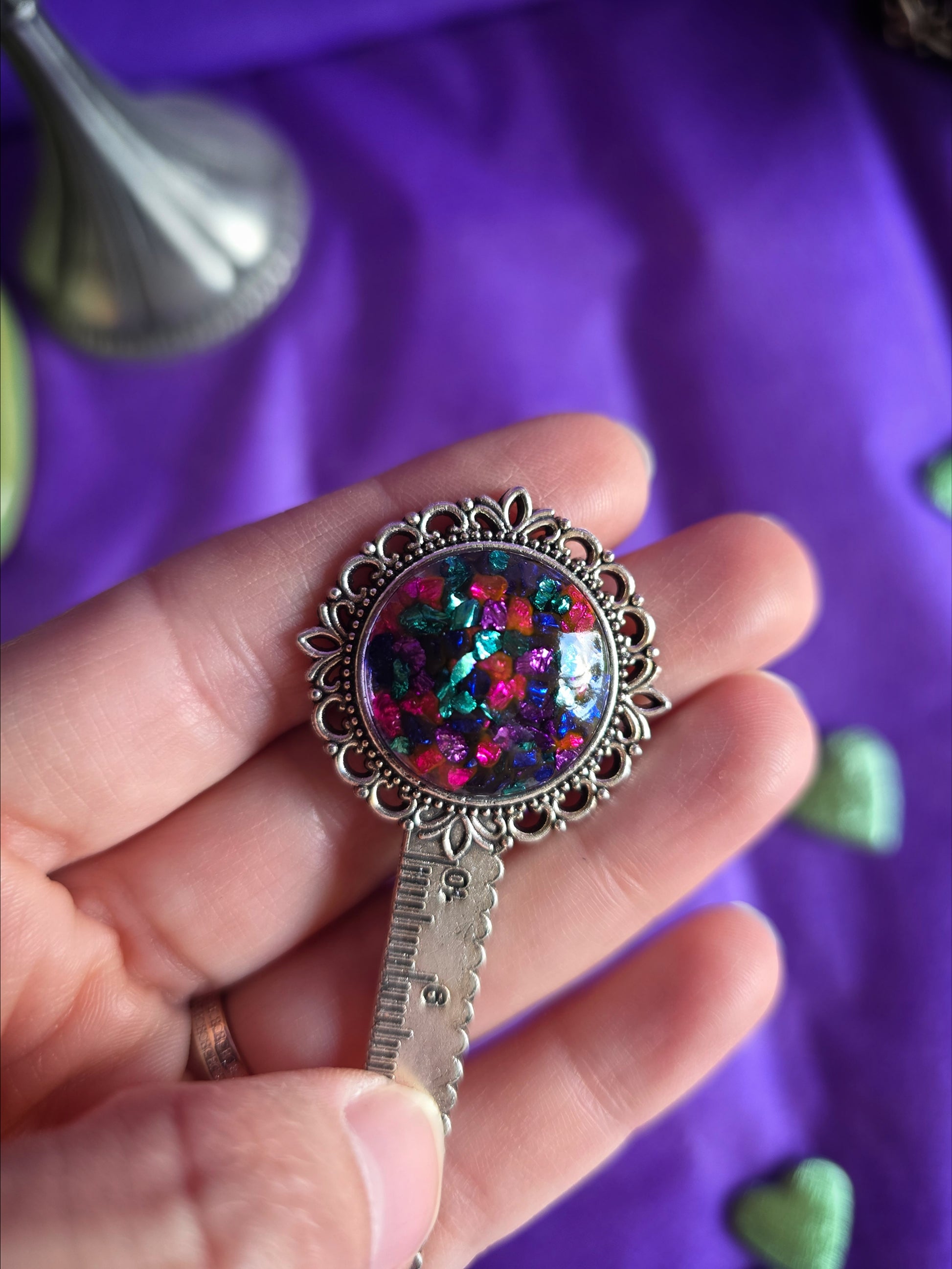 Cabochon 20mm réalisé à la main avec de véritables éclats de verres colorés
