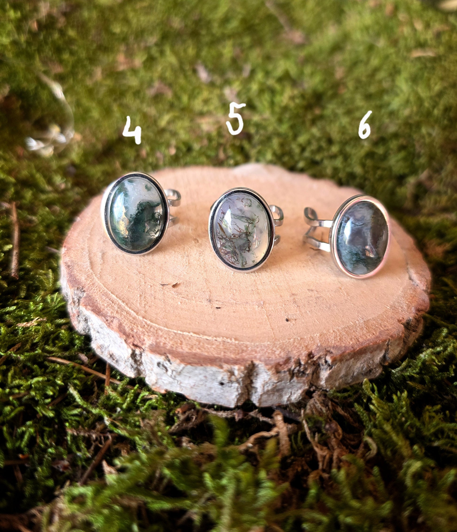 Bague ovale ajustable Agate mousse